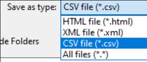 CSV file has been added as a file format option to store the created documentation in. When saving CSV documentation, the .csv file extension will automatically be selected.