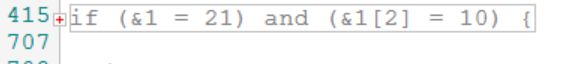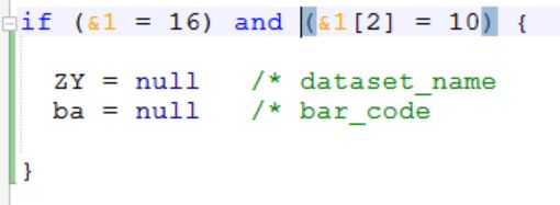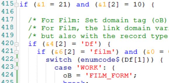 For nested code it's sometimes hard to find the matching bracket to an opening or closing bracket. In the new adapl editor you only need to click a (, ), { or } bracket (or right in front or after it, to get a blue highlight behind both the opening and matching closing bracket. Also, if the line that you clicked has a { or }, then a vertical green bar in the margin will indicate the beginning and ending of that code block, making it very easy to find matching curly brackets.