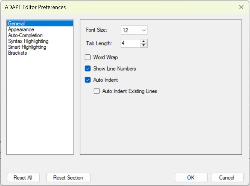 ADAPL code editor improvements