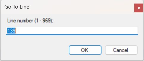 Enter a line number for the cursor to jump to when clicking OK. By default the current line number is entered. The maximum line number range in the current adapl file is displayed between brackets.