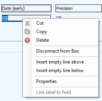 Previously, you couldn't just drag a field or label out of a box: once inside a box it was sort of locked inside it. There was a work-around, but to make it easier to move elements from within a box to somewhere outside it, a Disconnect from Box option has now been added to the right-click pop-up menu for elements which can reside inside a box. You can apply it to a multi-selection of elements too and if you want to disconnect an entry field and its label you'll have to select them both explicitly.